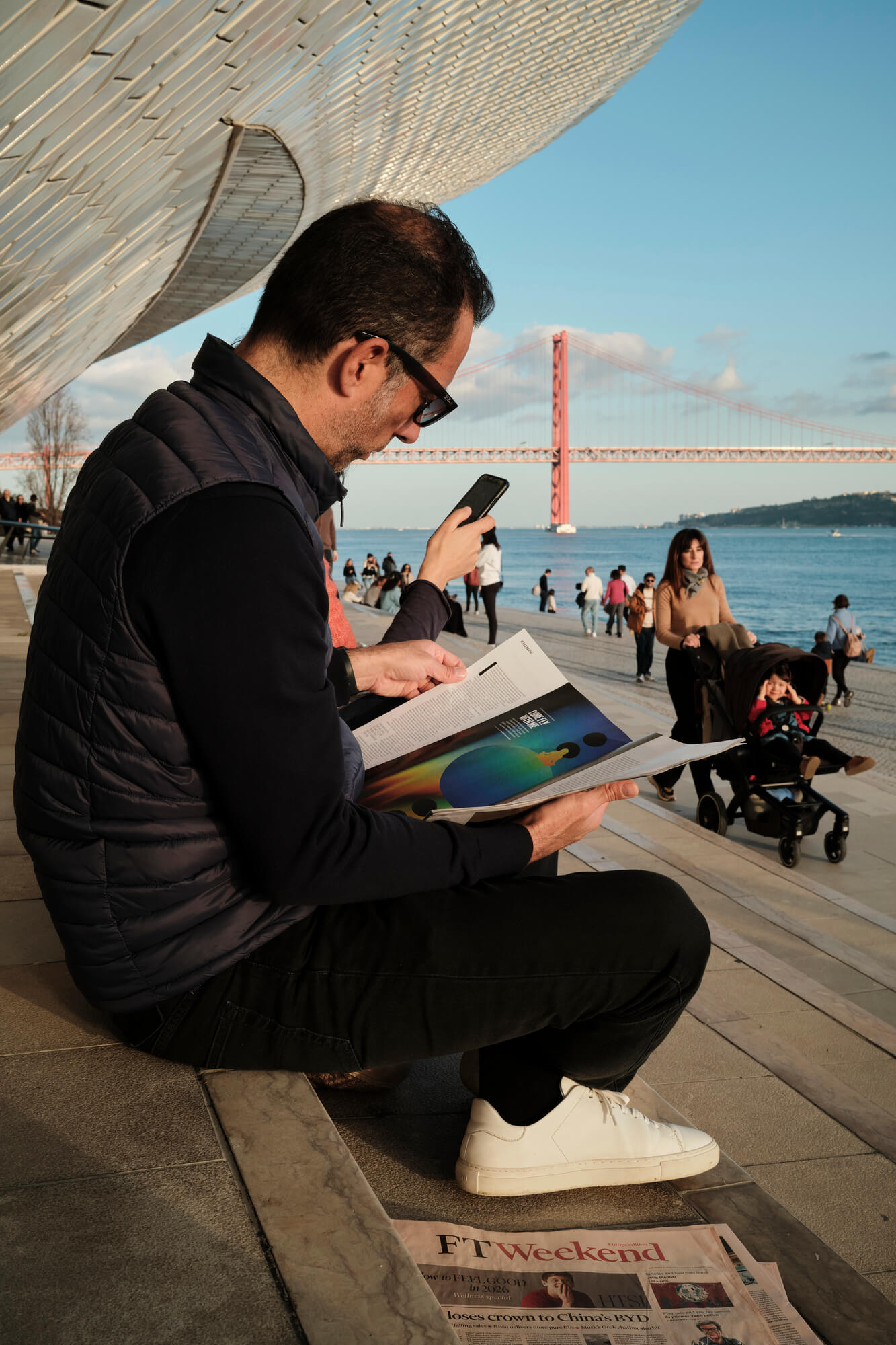Instead of that, you can take a long stroll along the river toward the Belém Tower, passing by an impressive MAAT museum building, Jerónimos Monastery, numerous cozy cafes, marinas, and flocks of people jogging, cycling, fishing or idly chilling.